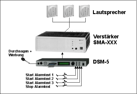 | Wiedergabe von Werbetexten Wiedergabe von Alarmtexten in Notfällen | |